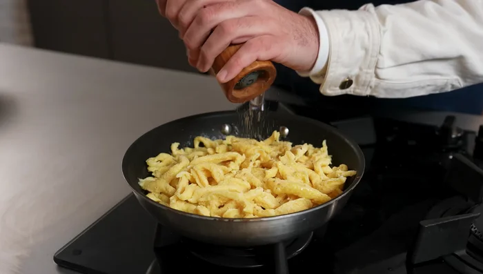 - Faire revenir les spätzle dans du beurre, ajouter du poivre.