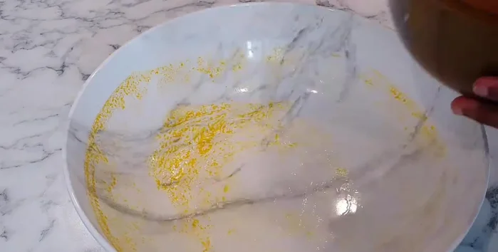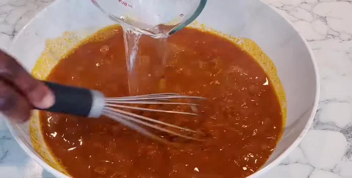 - Diluer la pâte de noix de palme avec de l'eau chaude. Bien mélanger pour obtenir une crème. Laisser reposer 10 minutes pour que les débris se déposent.