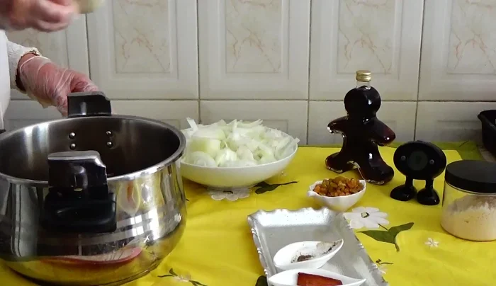 - Ajouter les oignons, le gingembre, la cannelle, le sel et le poivre. Laisser mijoter.
